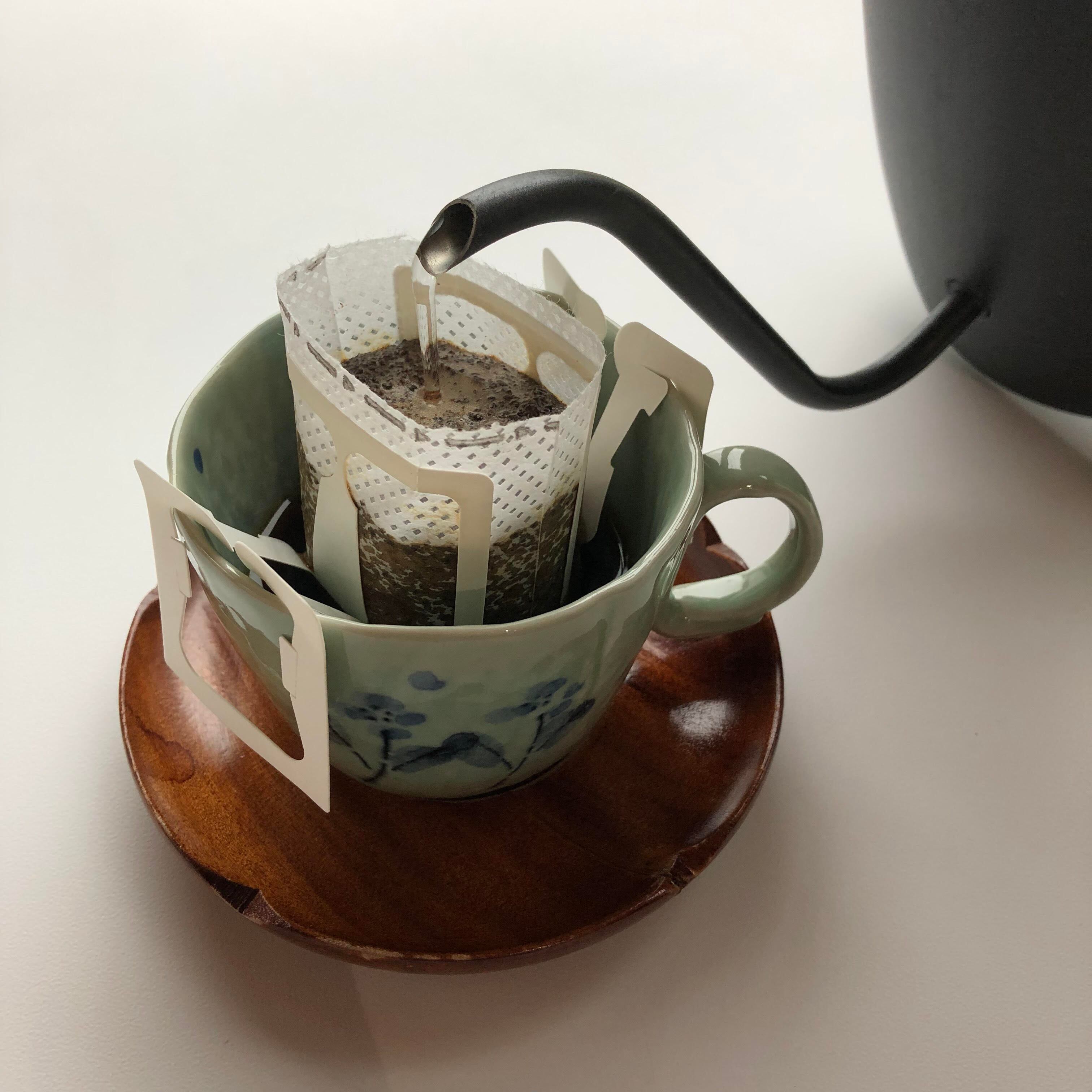 カップに乗せてお湯を注ぐだけで、簡単に村の喫茶店もくもくの味をお楽しみいただけます。
