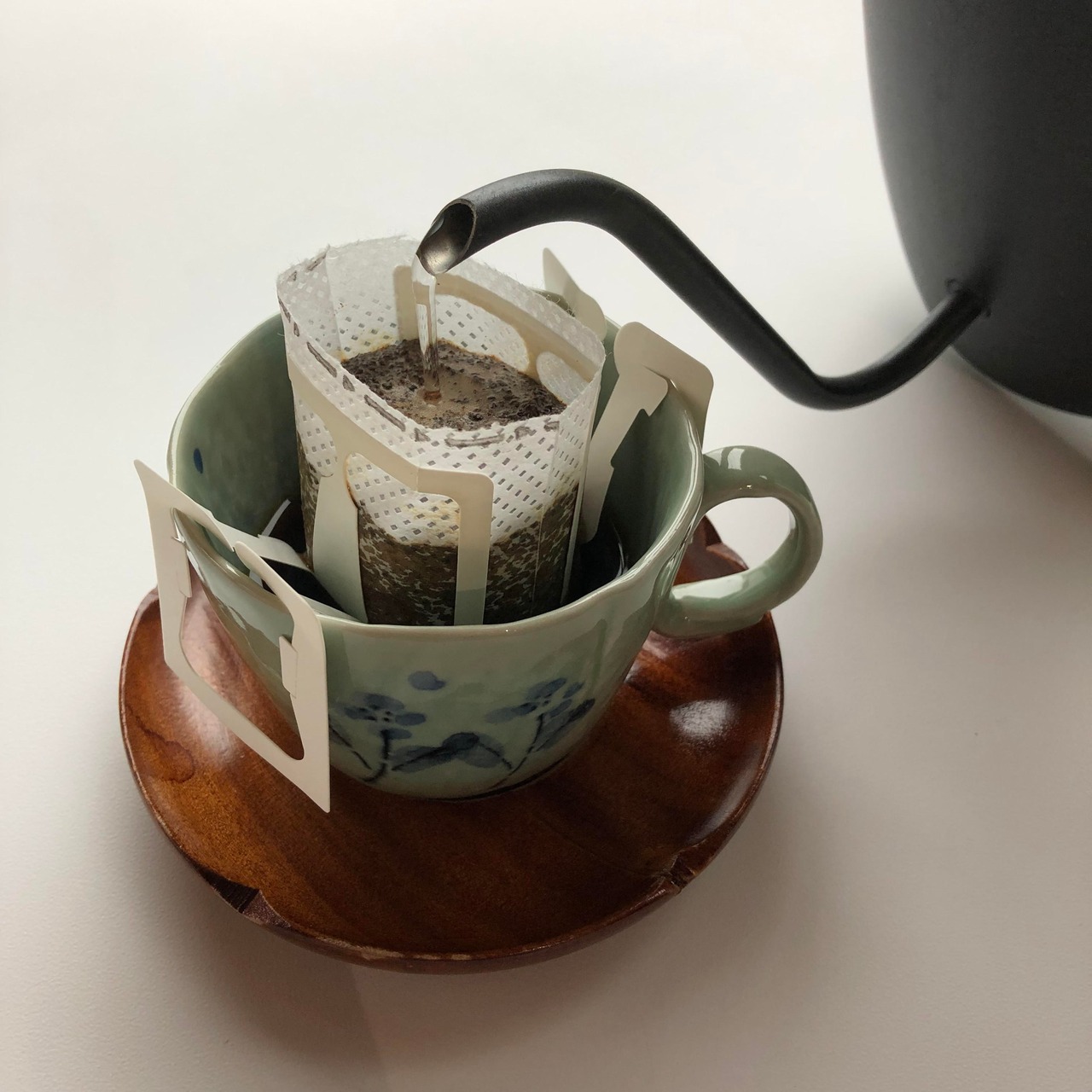 ウガンダのコーヒー豆を、南牧村の炭で自家焙煎した『もくもく炭火コーヒー』のドリップバッグです。